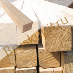 Это брус с минимальной степенью обработки. Помните, что при сушке он подвержен усадке и деформации. Категорически не рекомендуем выполнять строительство из бруса, если его влажность превышает 12-15%.